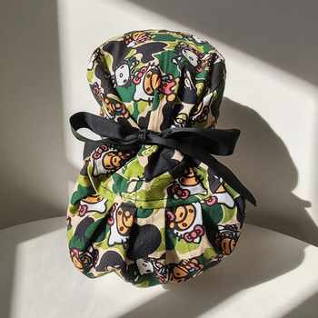 Cap Cirúrgico Camo Scrub Caps com Forro De Cetim Personalizado Bonito Dos Desenhos Animados Imprimir Tampas De Enfermeira Cetim-Forrado Impresso Rabo De Cavalo Scrub Chapéus